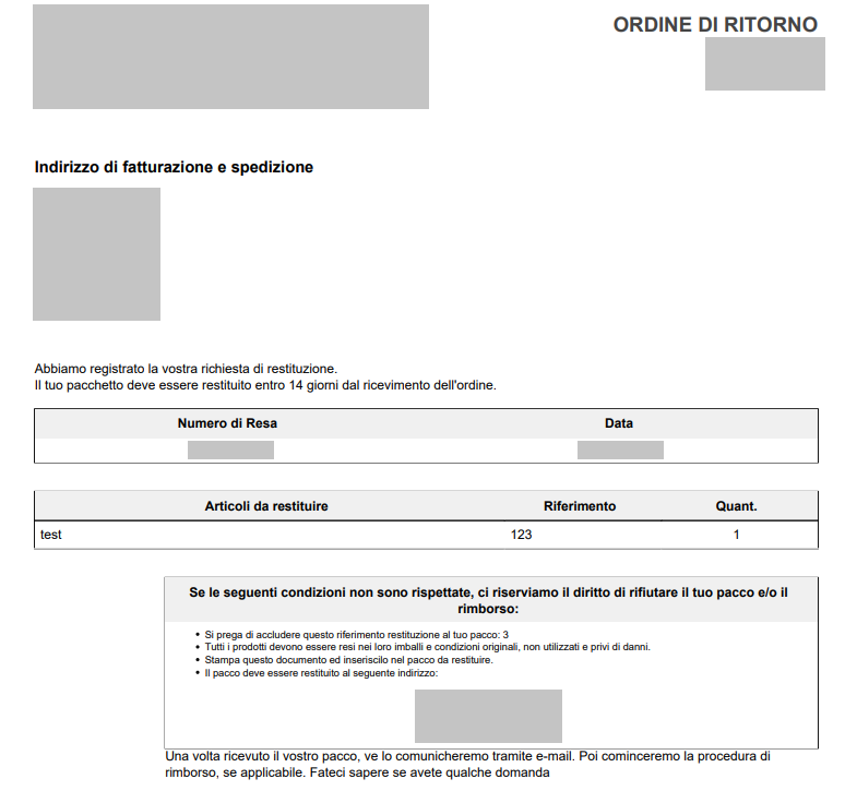 In caso di richiesta di reso accolta, il cliente riceverà una email di conferma e può così procedere alla spedizione dei prodotti.